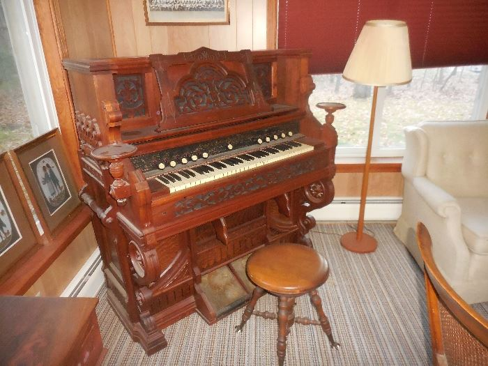 MUSIC: *** Baby Grand Piano by Sohmer*** 2 Victorian Organs by Loring and Blake and SD&SW Smith, Melodeon, Wooden Flute, Acoustic and Electric Guitars by Aria, Johnson, Yamaha, Ibarez, Hondo… Banjo, Zither, Autoharp, Sheet Music, Stands, Stools, many accessories