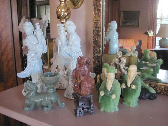 Early Icons and wooden painted religious figures. Large collection of books, many antique and collectible.