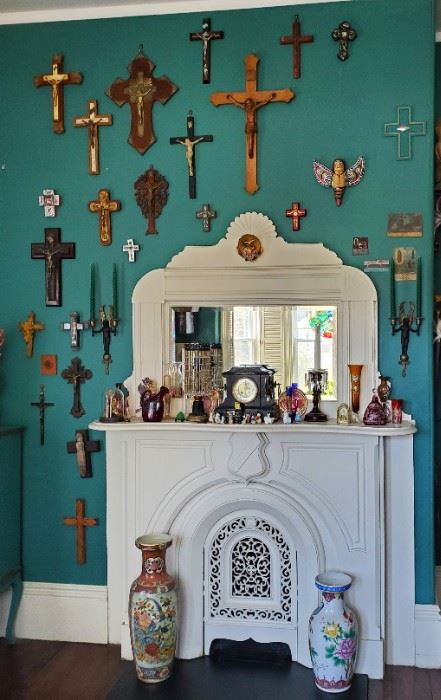 Collections of Crucifixes. Holy Water bottles, Icons