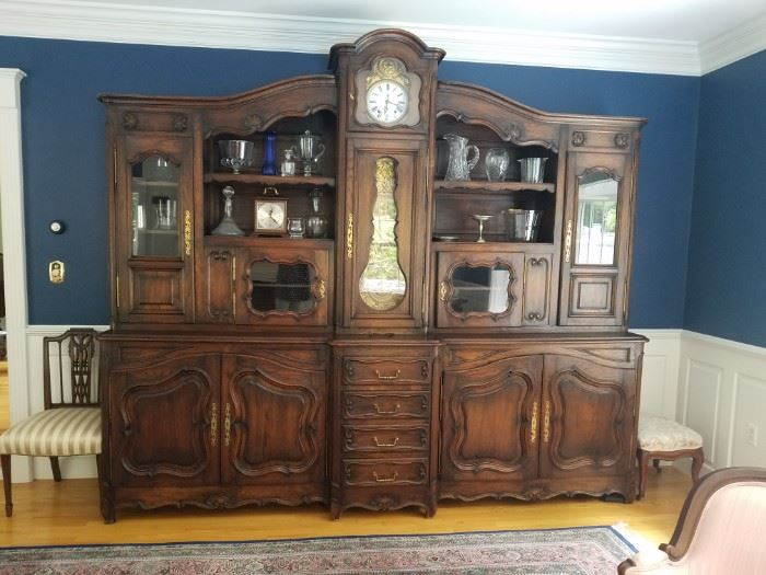 Of Special note: *19th Century French Style Cabinet 118 inches long 100″ high at its highest point with a built in Antique Wag on Wall Clock. A magnificent piece and probably one of a kind.