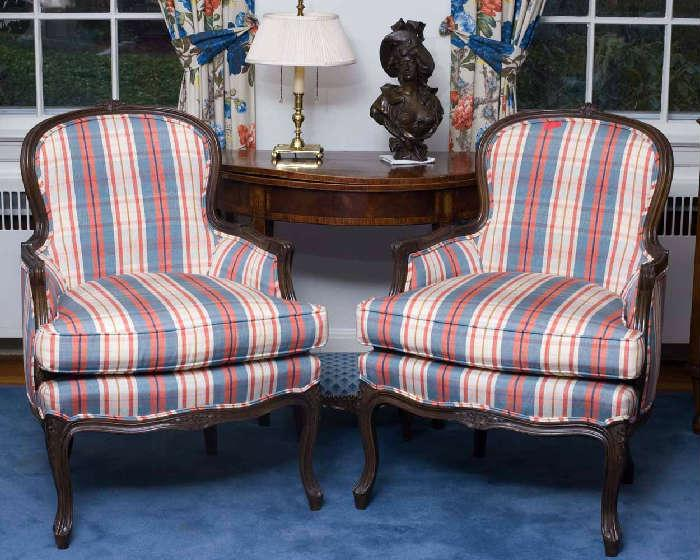 Great Decorative Accessories including a pair of Sevres style Garnitures, Alabaster pedestal, Bronze Bust by Coudray etc. Silver plated serving pieces.